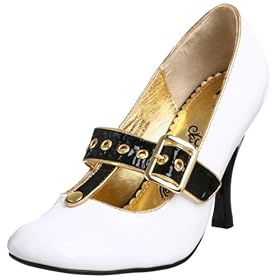 Looking for a bolder dress pump? Try Marching Orders from Naughty Monkey. The patent leather construction features a height-inducing covered heel, and a T-strap with lots of hardware for funky finish.